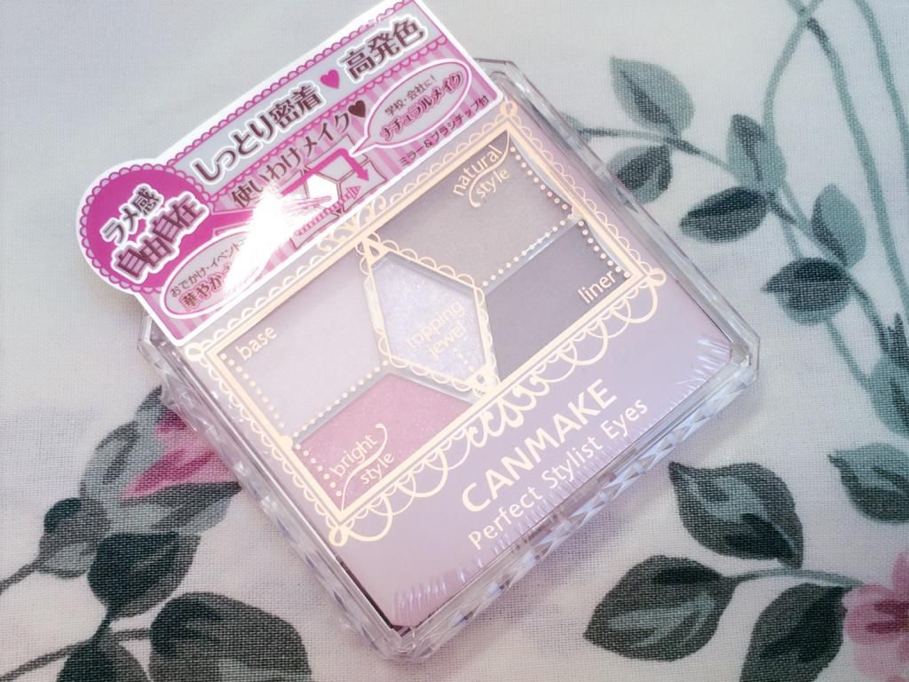 The eyeshadow was wrapped using clear shrink wrap. The cover is pale pink with gold font labels: base, liner, topping jewel, natural style, bright style. Can complete two different looks.